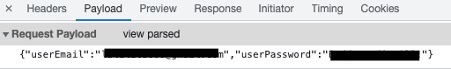 - Request Payload: the data you sent to the server when making an API request. Here iis the example of the JSON payload is sent for the endpoint to login.