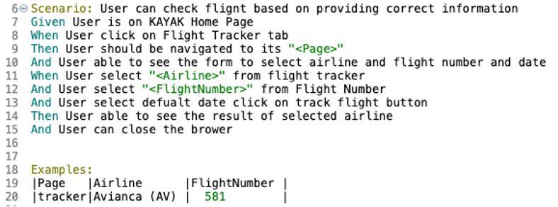 of the feature and individual scenarios I test. Gherkin syntax will be used here