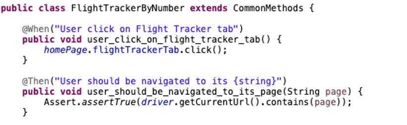 - - Step definitions package that contains the class file(s) with a small piece of code