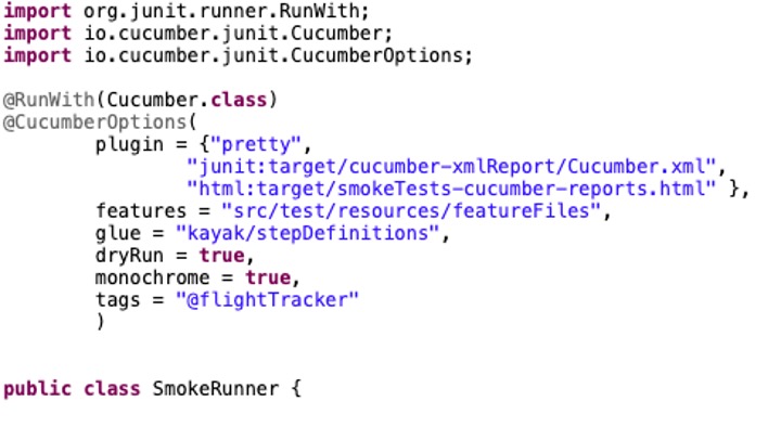 - - Test Runner will be used for running tests for Cucumber. In the test runner file